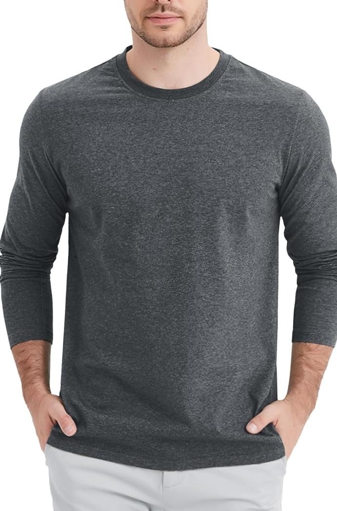These Men's Dark Grey Round Neck Long Sleeve Shirts are always a cool-weather favorite. Make a statement with the regular fit design of this classic t-shirt, designed to enhance your physique, and complete your stylish ensemble.